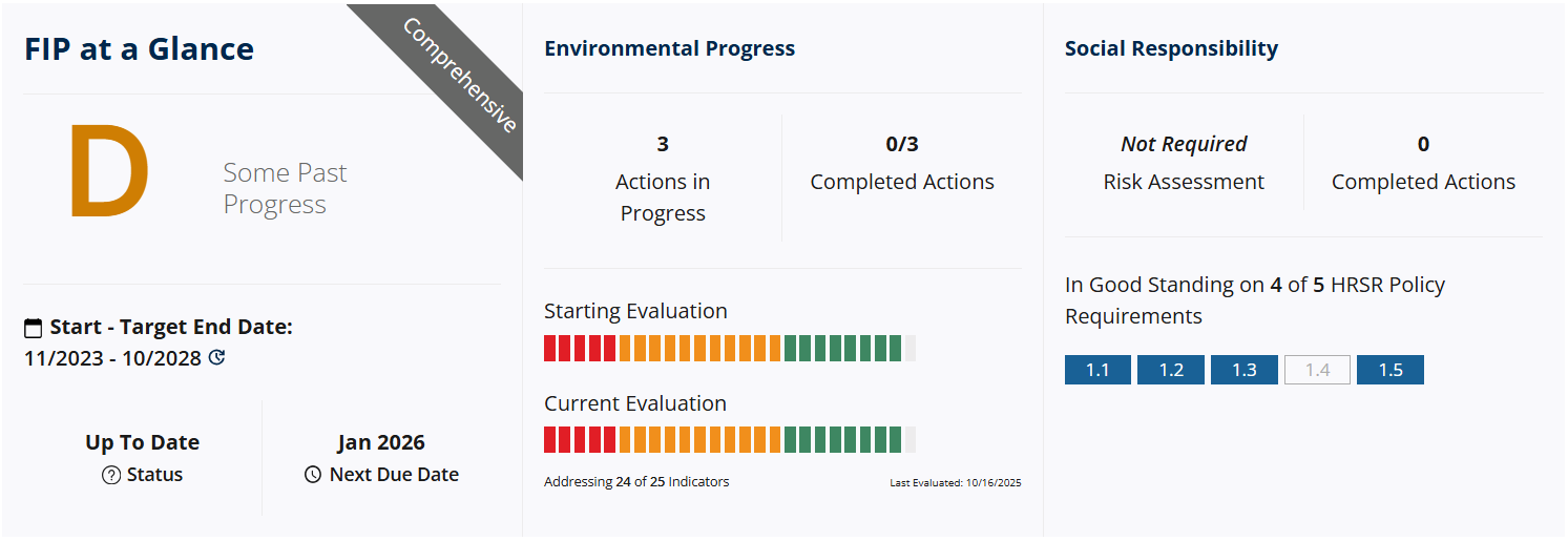 Also in late October 2023, a FIP profile at FisheryProgress.org was created and submitted for review. The draft FIP profile was updated in late November 2023 to reflect progress up to the end of that month; however, FisheryProgress is yet to complete the review and publication of the profile.