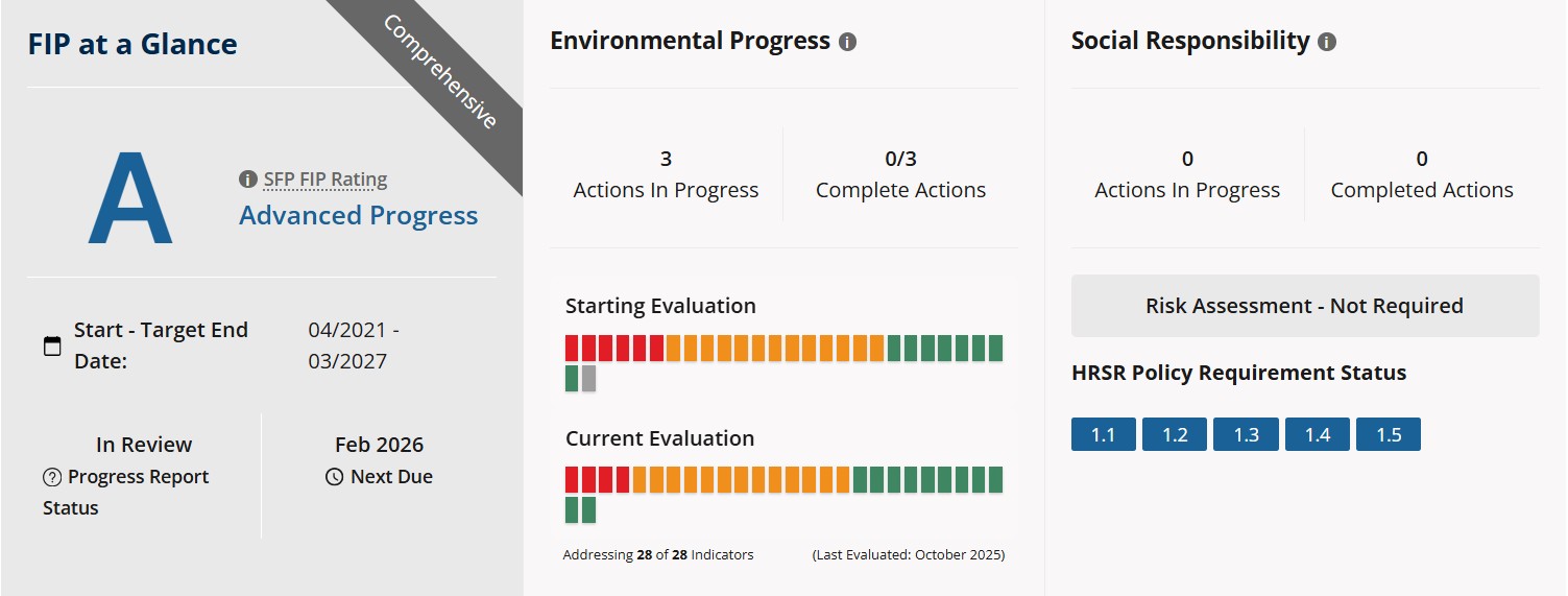 | FIP Rating according to SFP rating system: | A (Exceptional Progress, February 2026) |
