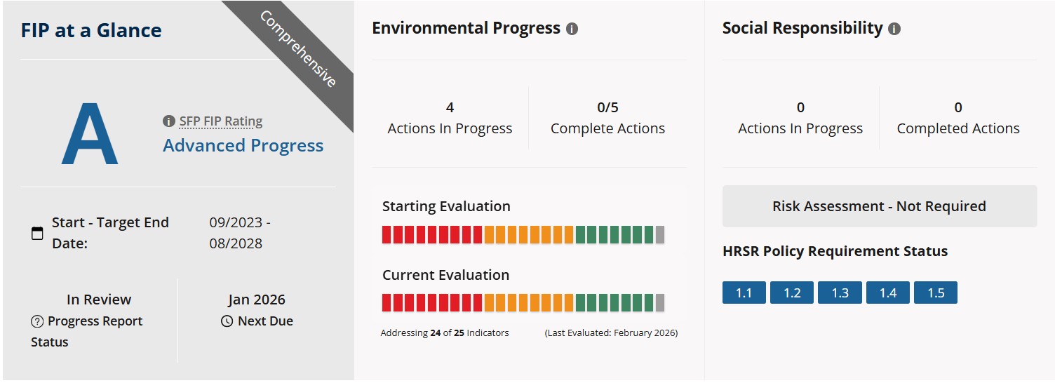 | FIP Rating according to SFP rating system: | A (Advanced progress, March 2026) |
