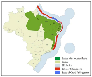 The two lobster species, Panulirus argus (red lobster, or lagosta-vermelha in Portuguese) and Panulirus laevicauda (green lobster, or lagosta-verde in Portuguese), represent the most important fishing resources of the coastlines of northern and northeastern Brazil. The fishery exports mainly to the US market, with an average worth 60 million USD per year, and can provide for the livelihood of more than 15,000 fishers.