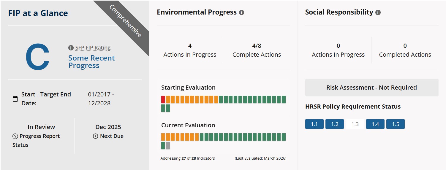 FIP Rating according to SFP rating system: C (Some recent progress, February 2026)
